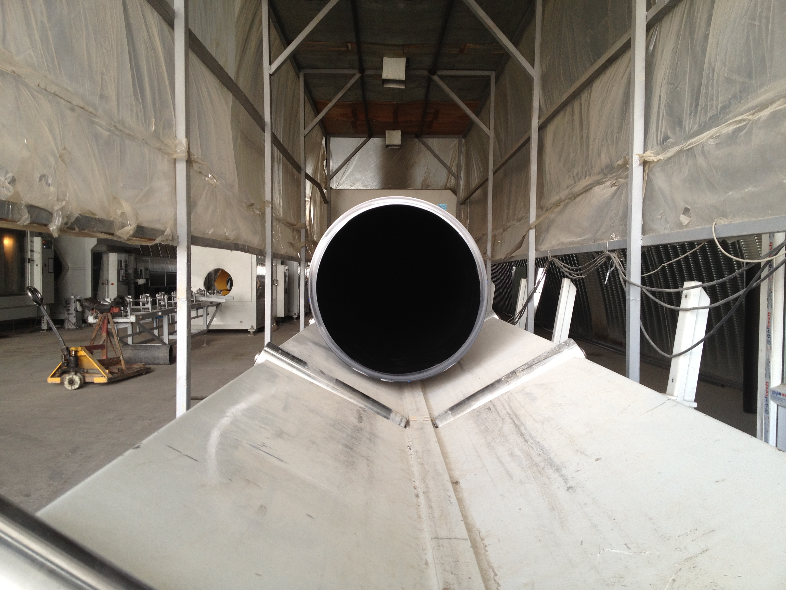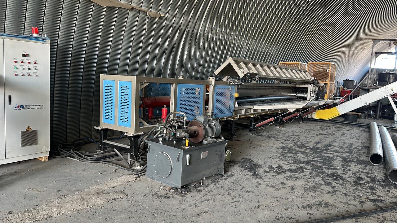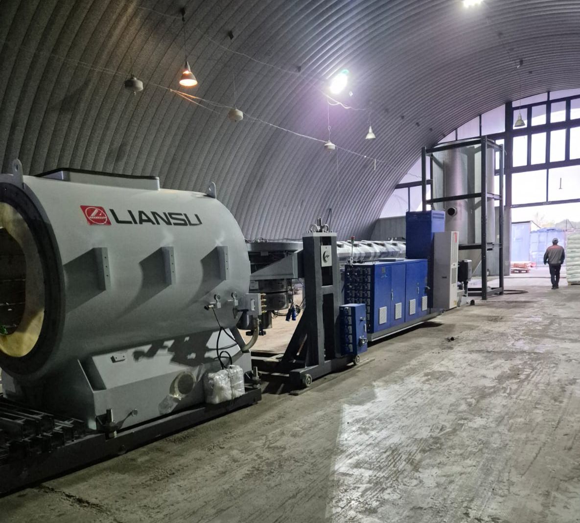 На нашем заводе установлена новая производственная линия для выпуска полиэтиленовых труб крупного диаметра.